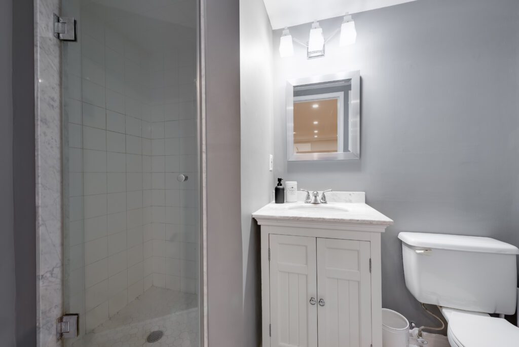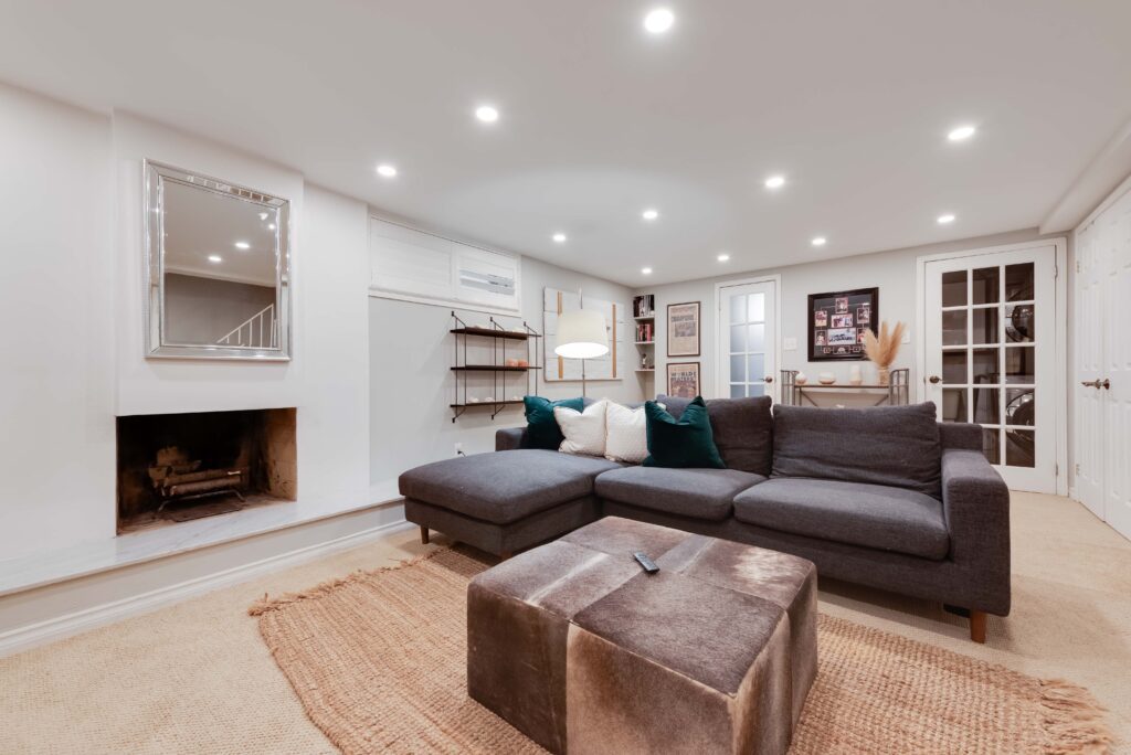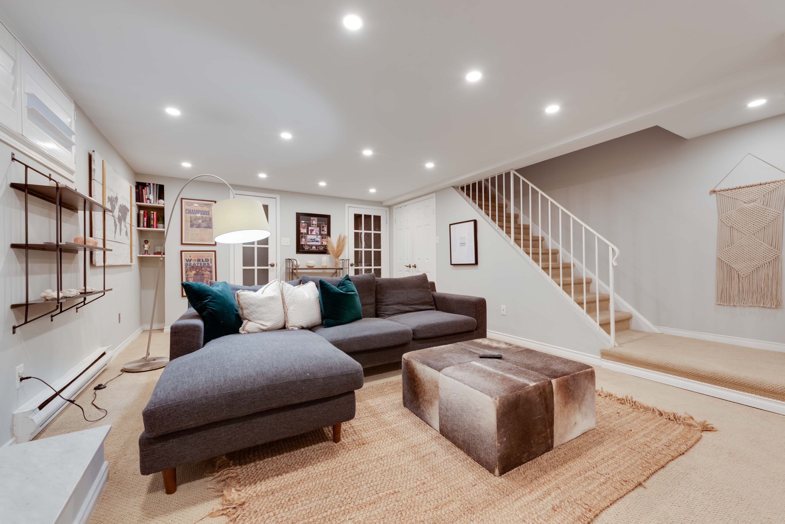 The lower level boasts over 7-foot ceilings and a generous media room complete with a fireplace and built-in media unit—ideal for movie nights or extra living space.