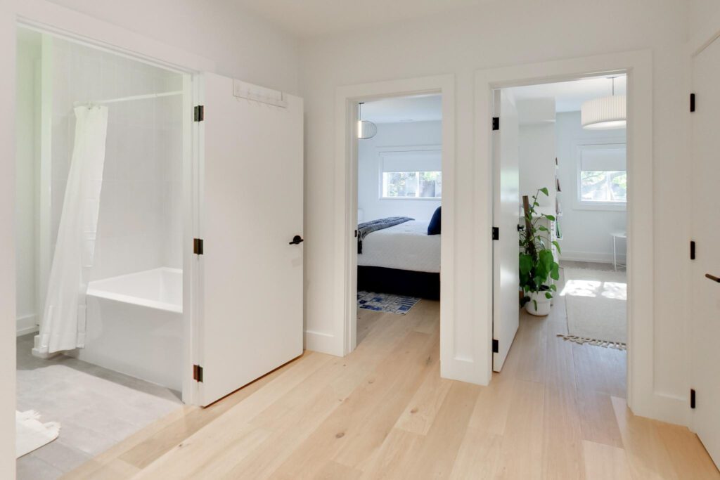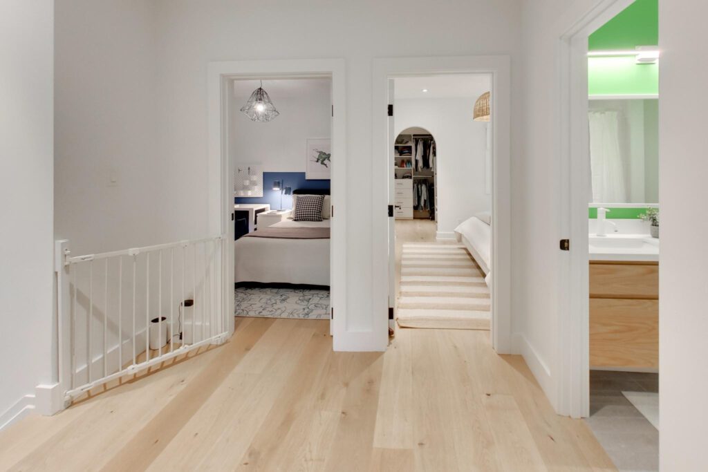 Loaded with style and functionality, it features: wide plank, white oak floors and flush area vents, custom wood millwork with mitered edges, walk-in organized closets, and large porcelain tiles adorn this home.