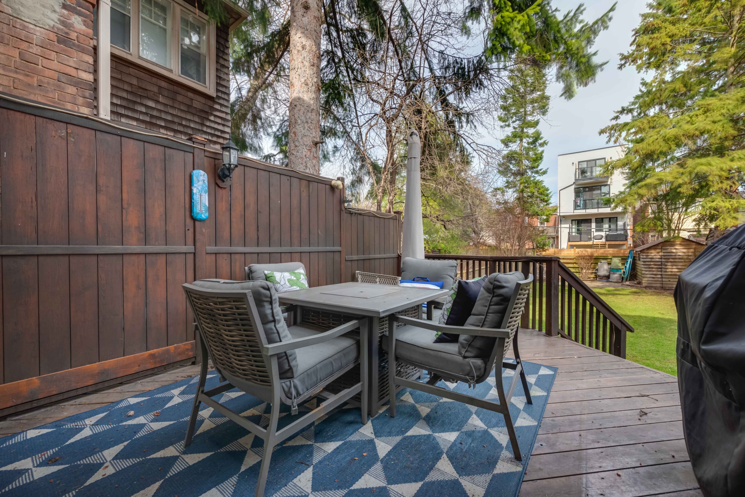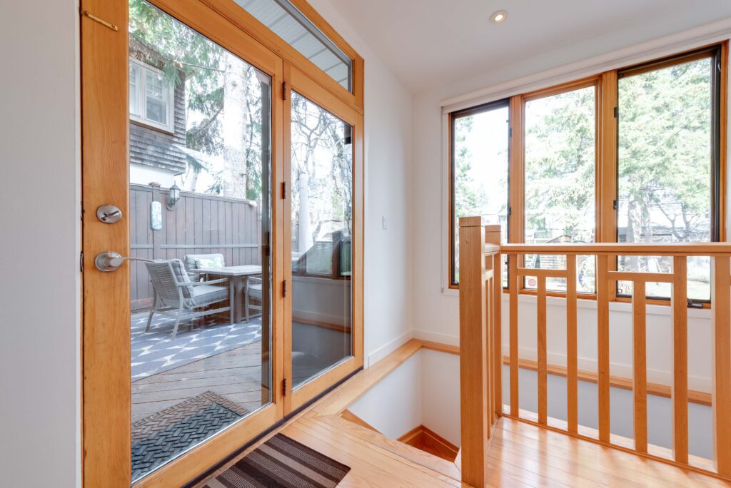 Step inside to a bright, open-concept main floor where tall windows pour in natural light and wide-plank floors add a fresh, inviting feel. The living and dining areas flow effortlessly – perfect for everyday living and easy entertaining – while a gas fireplace creates the ideal spot to gather on cooler evenings. At the back of the home, a striking wall of windows blurs the line between indoors and out, filling the space with natural light and greenery. The kitchen is functional with abundant cabinetry and center island, and light streams through those expansive rear windows. It opens seamlessly to a spacious deck and a truly sprawling backyard – a rare and special setting that invites outdoor living, play, and entertaining, with clear potential to add an addition as your needs grow.