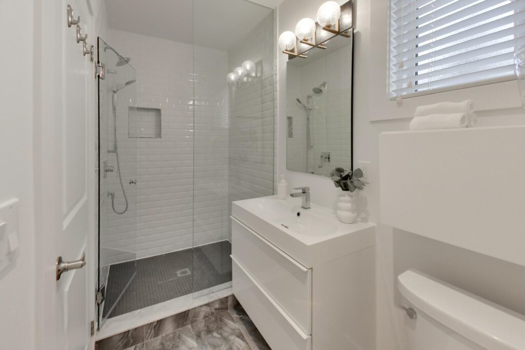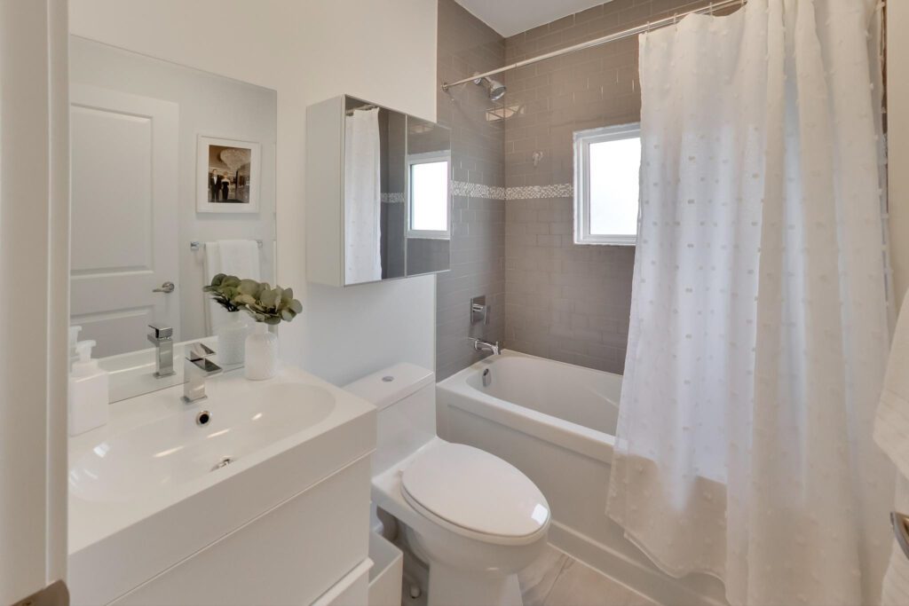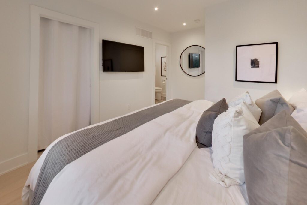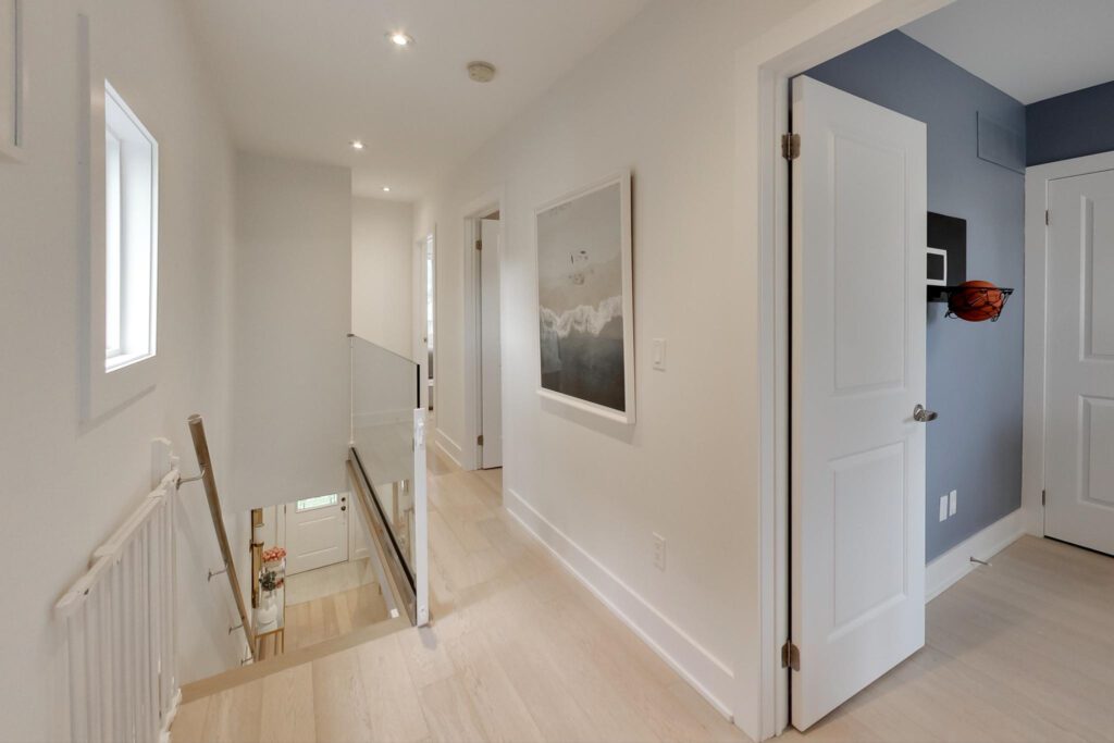 Upstairs, the primary bedroom offers a serene escape with its walk-in organized closet and en-suite bathroom. Organized closets in each bedroom too keeps everything tidy and the main four-piece bathroom impresses with a floating vanity and ample storage.