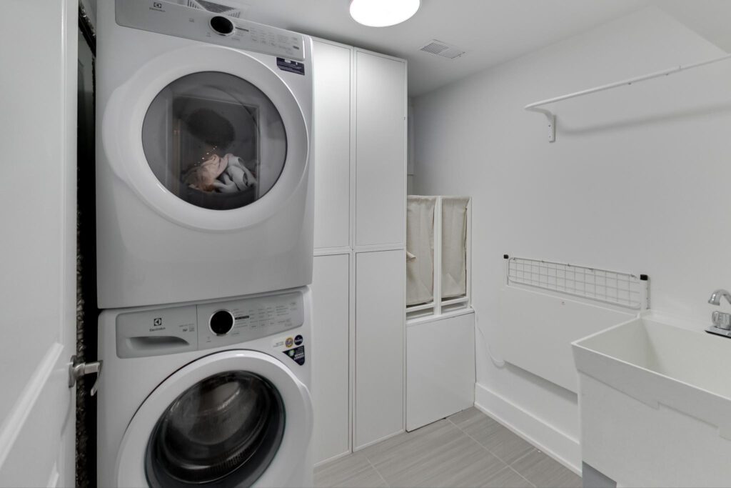 The lower level is designed to wow, boasting nearly seven-foot ceilings, a cozy media room with pot lights, a spa-like three-piece bathroom, and a separate bedroom with plenty of built-ins for storage. A convenient laundry room with built-in cabinetry completes this level.