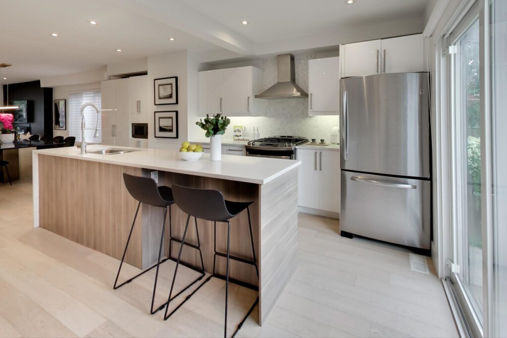 Step inside this beautifully renovated three-bedroom, four-bathroom home – the ultimate wish list property – and prepare to be amazed. The oversized, open-concept main floor with hardwood floors and pot lights provides an expansive, versatile space perfect for modern family living and large dinner parties.