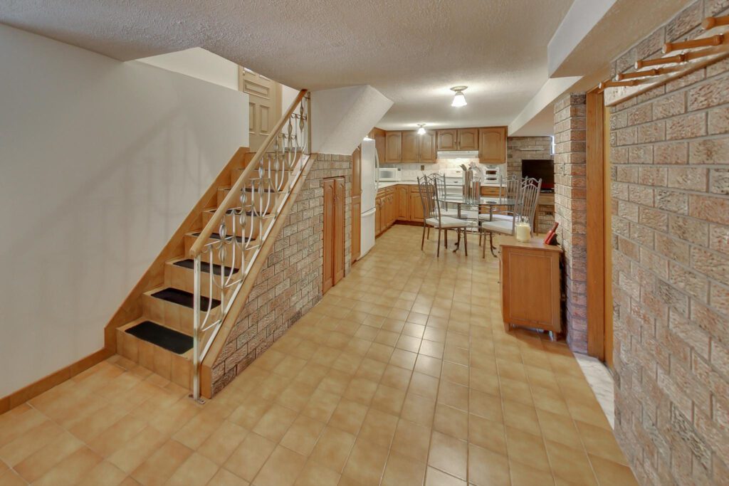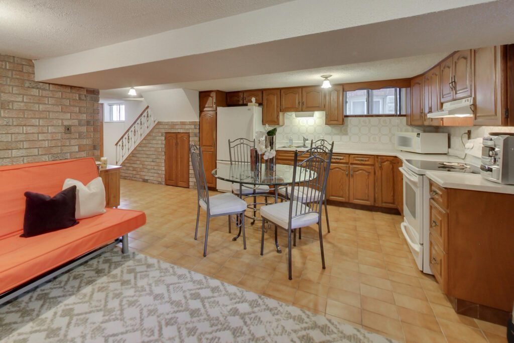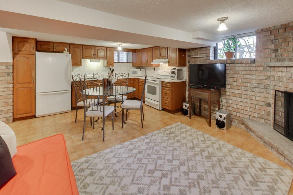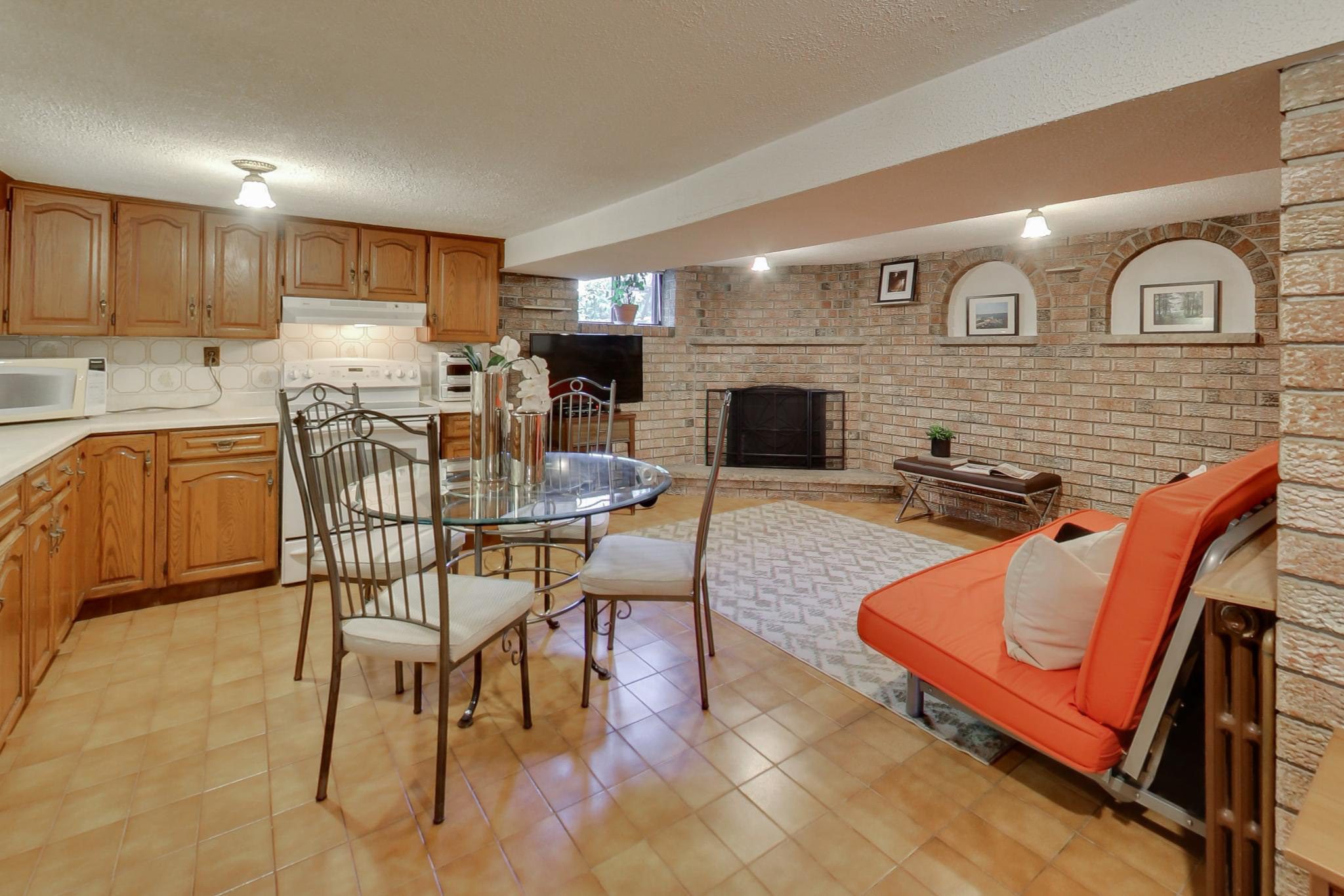 The finished lower level offers good ceiling height, a side entrance, open-concept living area with fireplace, full kitchen, large 3-piece bathroom, and plenty of storage space—perfect for guests, extended family, or future rental potential.