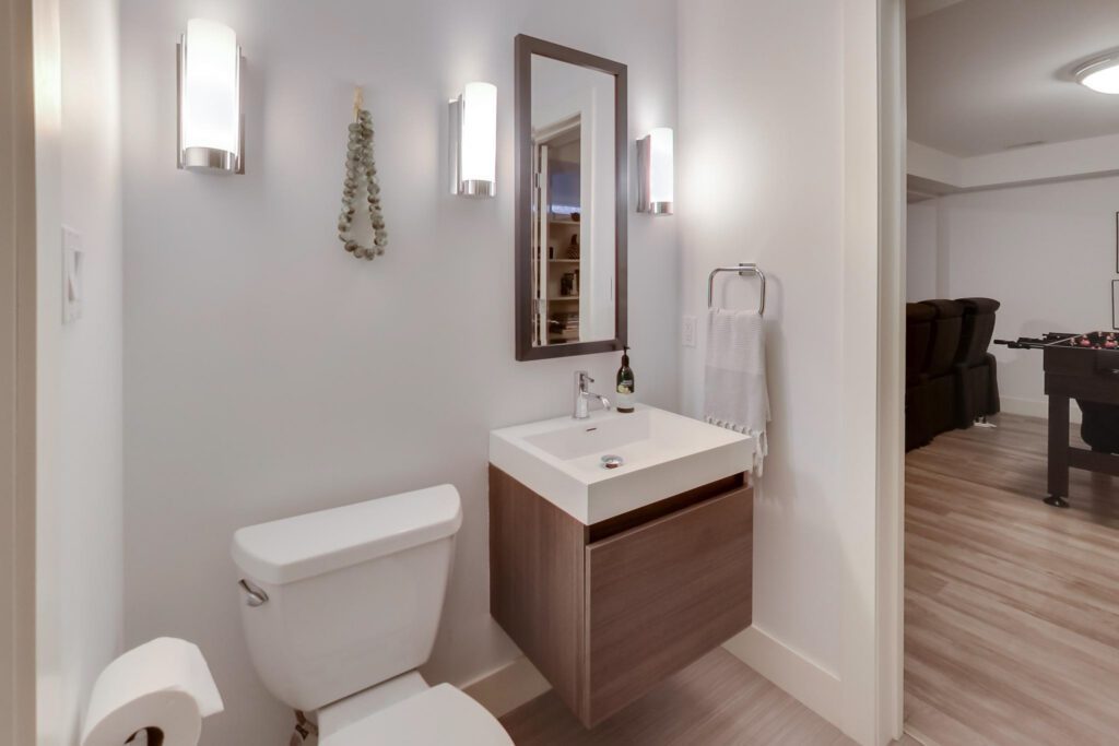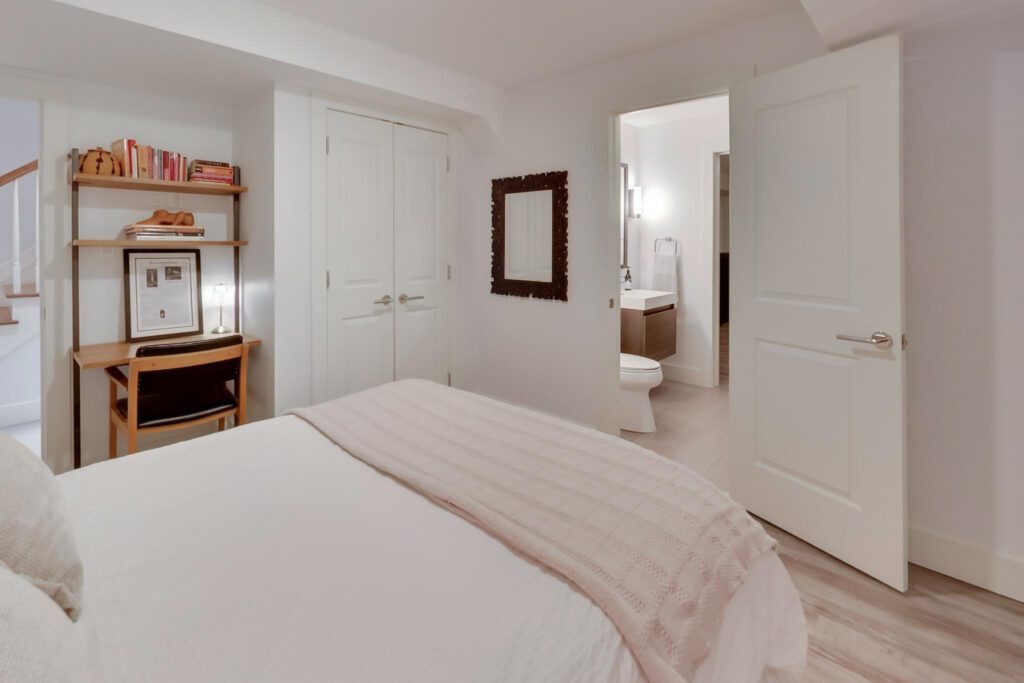 The home’s allure extends to the lower level, where 8-foot ceilings, heated floors, and a chic wet bar create the ultimate backdrop for recreation or hosting. A fourth bedroom and dedicated laundry closet round out this highly functional space.