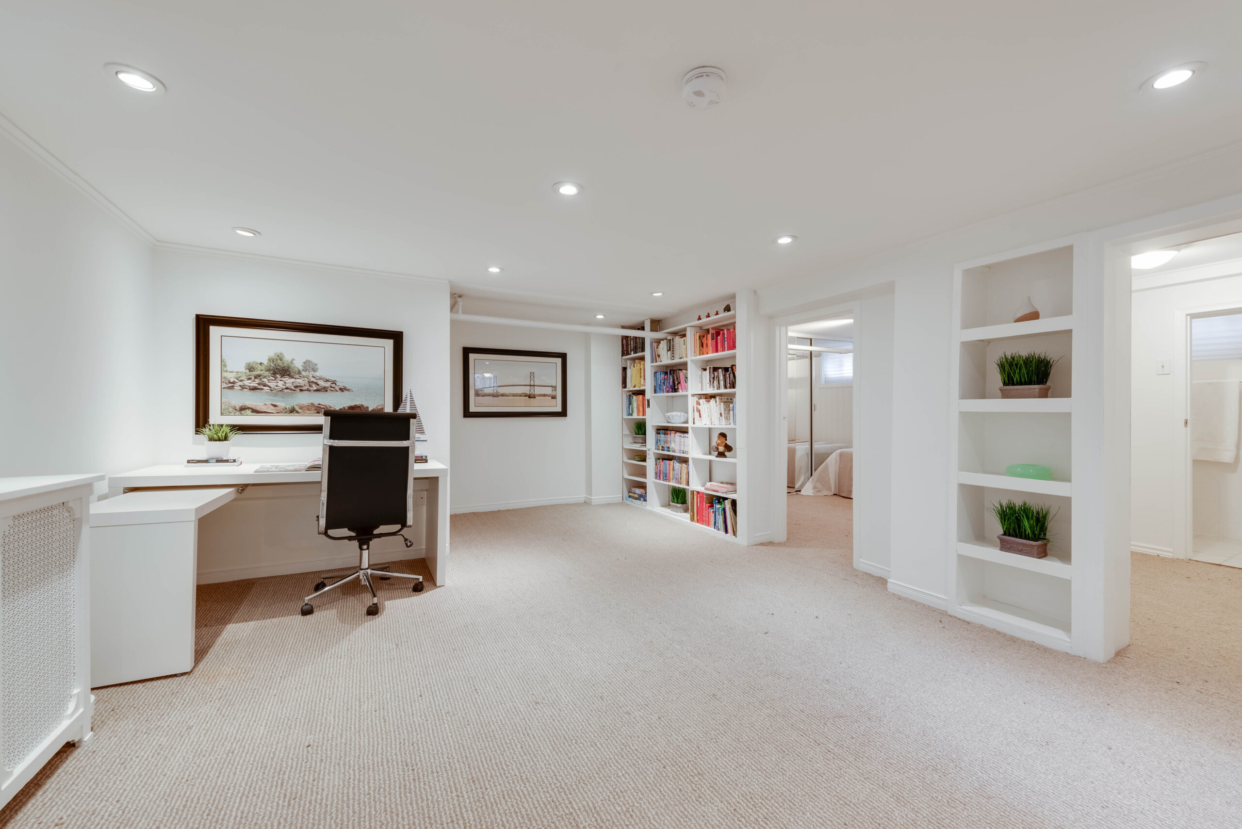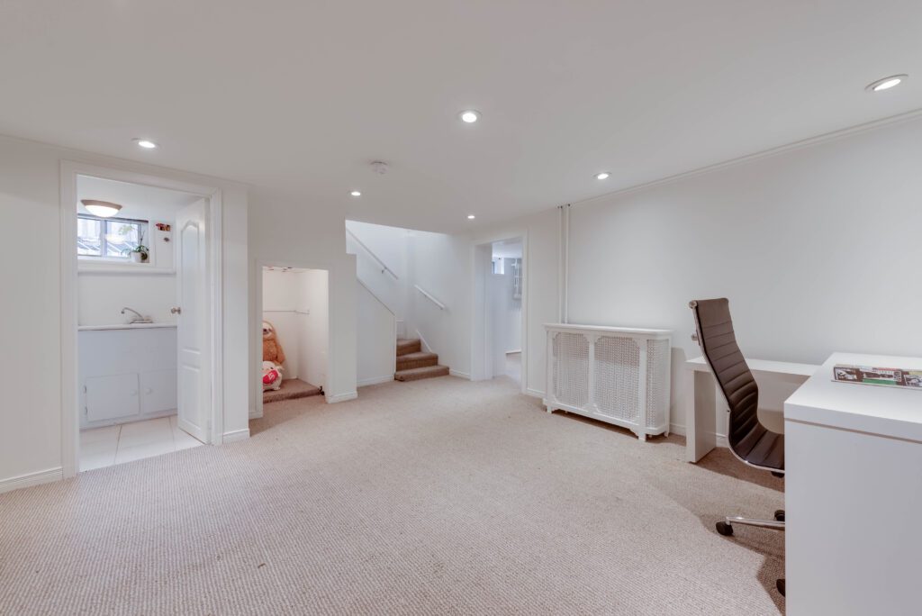 The sun-filled lower-level impresses with a massive media room, separate bedroom, home office, and a separate entrance—ideal for guests, work-from-home needs, or a future in-law suite.