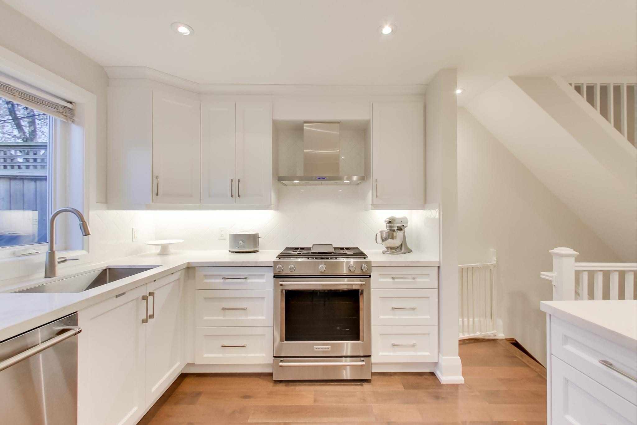 Sighting of the awesome U-shaped kitchen – exposing an abundance of white cabinetry that will house all your kitchen gadgets, generous counter space, pot drawers, stainless steel appliances and a breakfast bar with quartz countertop – is more than you expected and you can’t wait to put your cooking skills to use!